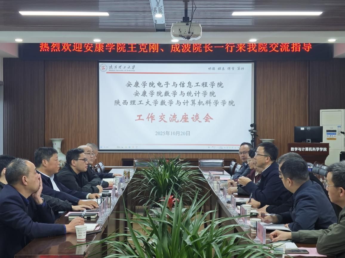 为进一步深化校际合作,推动电信学院学科建设与人才培养质量提升,2025年10月20日,电信学院党总支书记田静、院长王克刚和副院长丁礼磊前往陕西理工大学数学与计算机科学学院,就党建引领、学科建设、人才培养与科研合作等事宜展开深入学习交流。