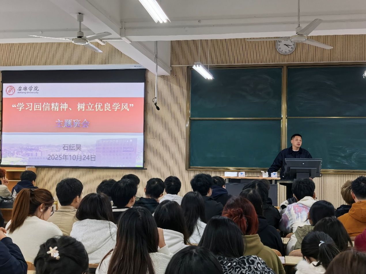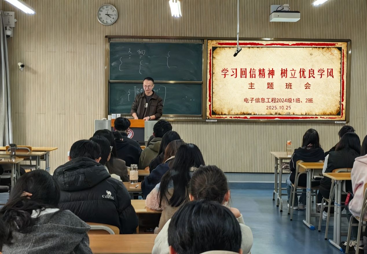 为深入学习贯彻习近平总书记给特岗教师的重要回信精神,全面落实立德树人根本任务,将回信精神转化为推动学院学风建设的强大动力,引导电信学子坚定理想信念、明确学习目标、养成良好学习习惯,近日,电信学院各班级陆续召开“学习回信精神、树立优良学风”主题班会。本次班会由各带班辅导员主持,覆盖学院全体学生,通过班会形式推动回信精神入脑入心,为优良学风的培育注入新活力。