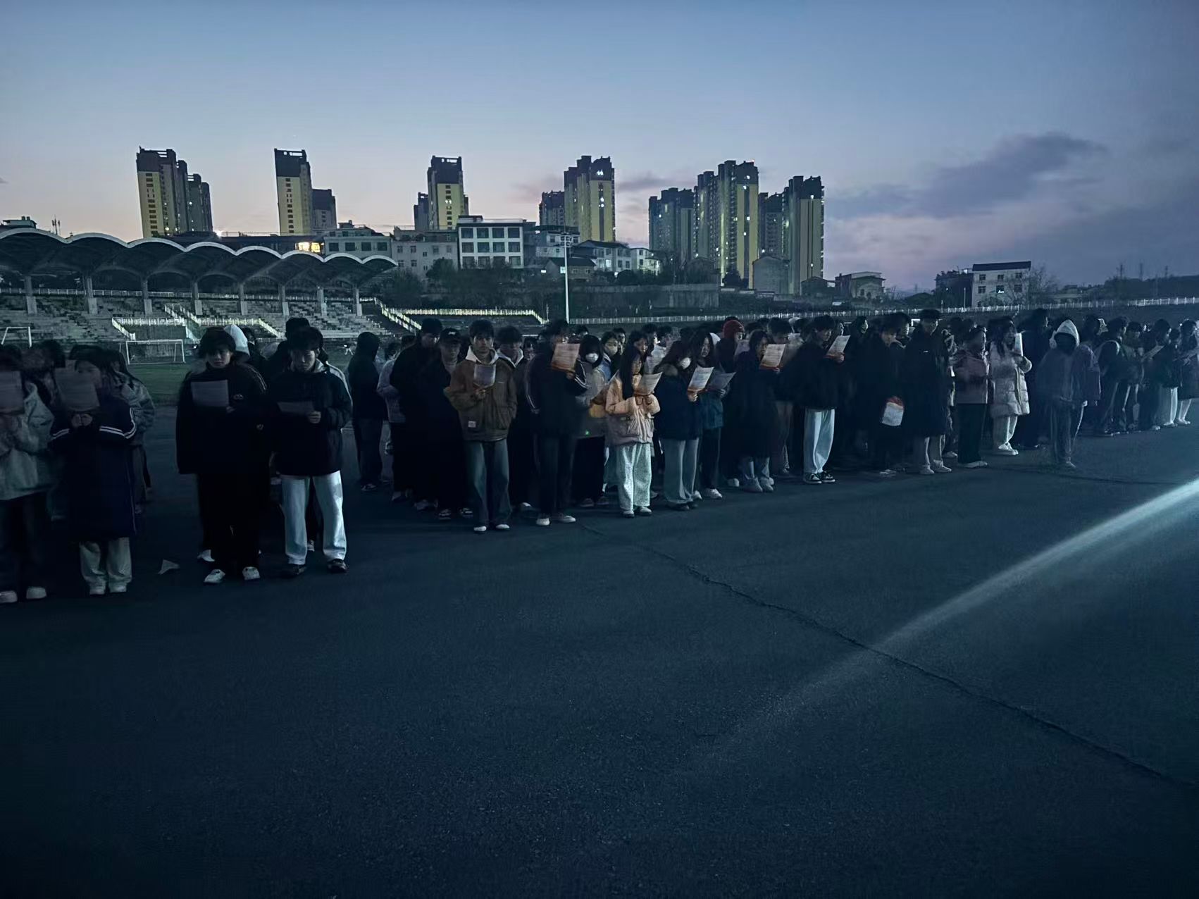 升旗仪式结束后,宪法晨读活动随即展开。2025级新生手持宪法文本节选,以洪亮整齐的声音诵读宪法核心条款。“中华人民共和国的一切权力属于人民”、“中华人民共和国公民在法律面前一律平”等一句句庄重的条文从青年学子口中传出,回荡在操场之上,更镌刻进每个人的心中。晨读过程中,同学们神情专注,眼神坚定,在逐字逐句的诵读中,深刻体会宪法作为国家根本大法的威严与神圣,进一步明晰自身的权利与义务。