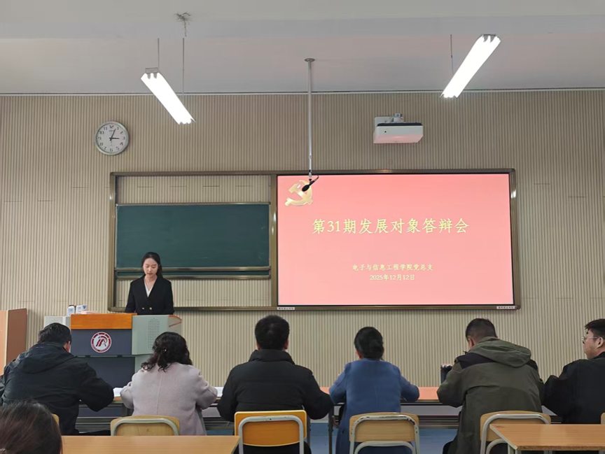 为严格党员发展程序,确保新发展党员质量,进一步加强对入党发展对象的培养教育和考察,12月12日,电信学院在1320举办第31期入党发展对象答辩会。学院党总支书记田静、党总支副书记蔡正旺、各学生党支部书记、支委、辅导员、党员代表及全体第31期入党发展对象参加了此次答辩会。
