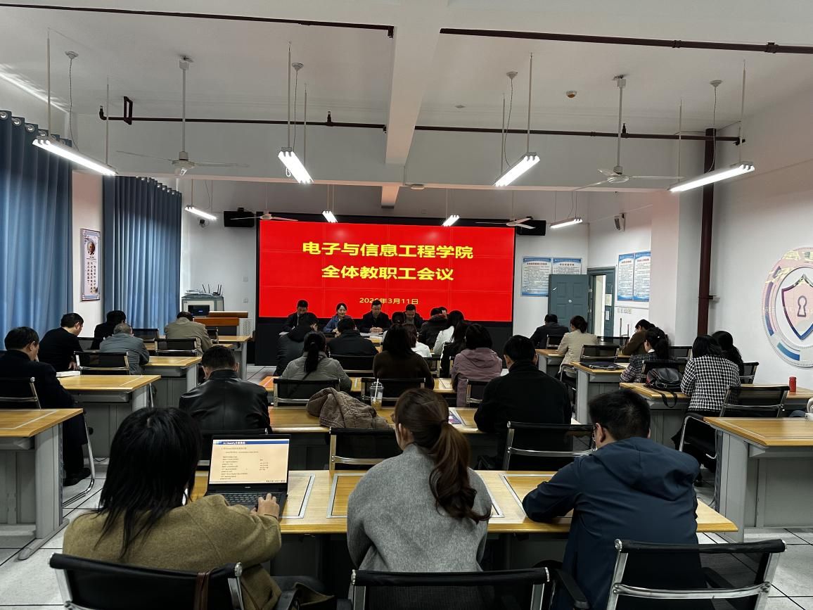 为全面部署新学期各项工作,凝聚发展合力,3月11日,电信学院在B602会议室召开2026年春季开学教职工大会。学院领导班子及全体教师参加会议,会议由党总支书记田静主持。